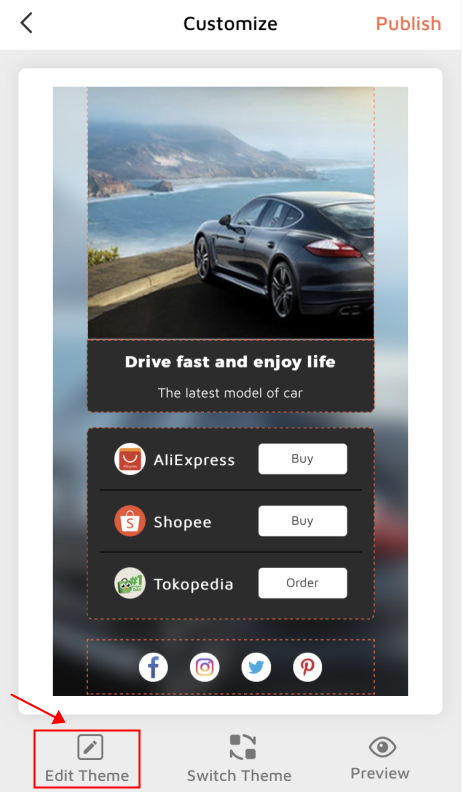 1.Go to link customize page,click Theme editor on the bottom
