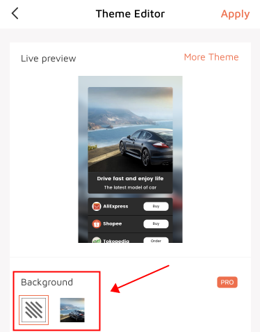 2.On the theme editor page,you can switch background by default or your profile image