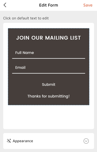 Click the form text to modify the text content