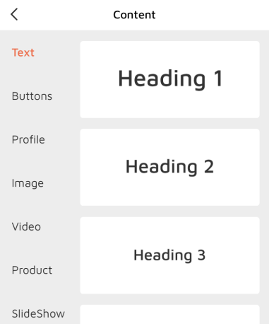 You can click "+" section to add new content. There are many types of content, you can freely combine content to highlight your own style.
