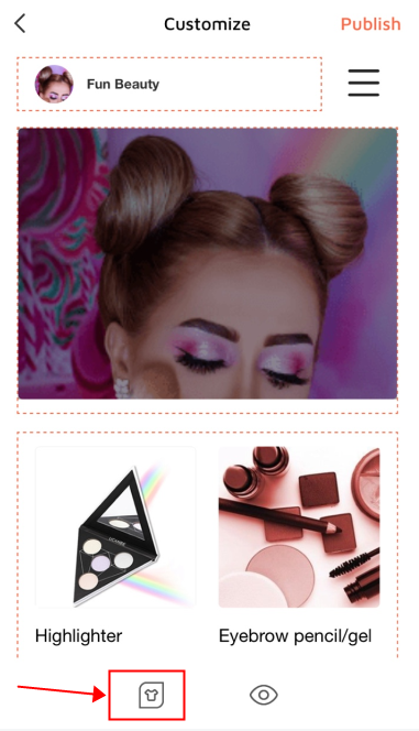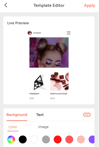 to customize theme. You can customize Background and Font. Click "Apply" when finished. After all the custom parts are completed, please click the "Publish" button.