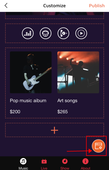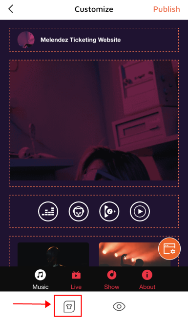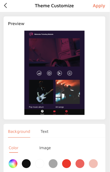 to customize theme. You can customize Background and Font. Click "Apply" when finished. After all the custom parts are completed, please click the "Publish" button.