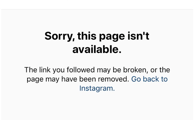 If the "Sorry, this page isn't available" message still appears when viewing your Insta website in a private/incognito browser window, report the issue directly to Instagram.